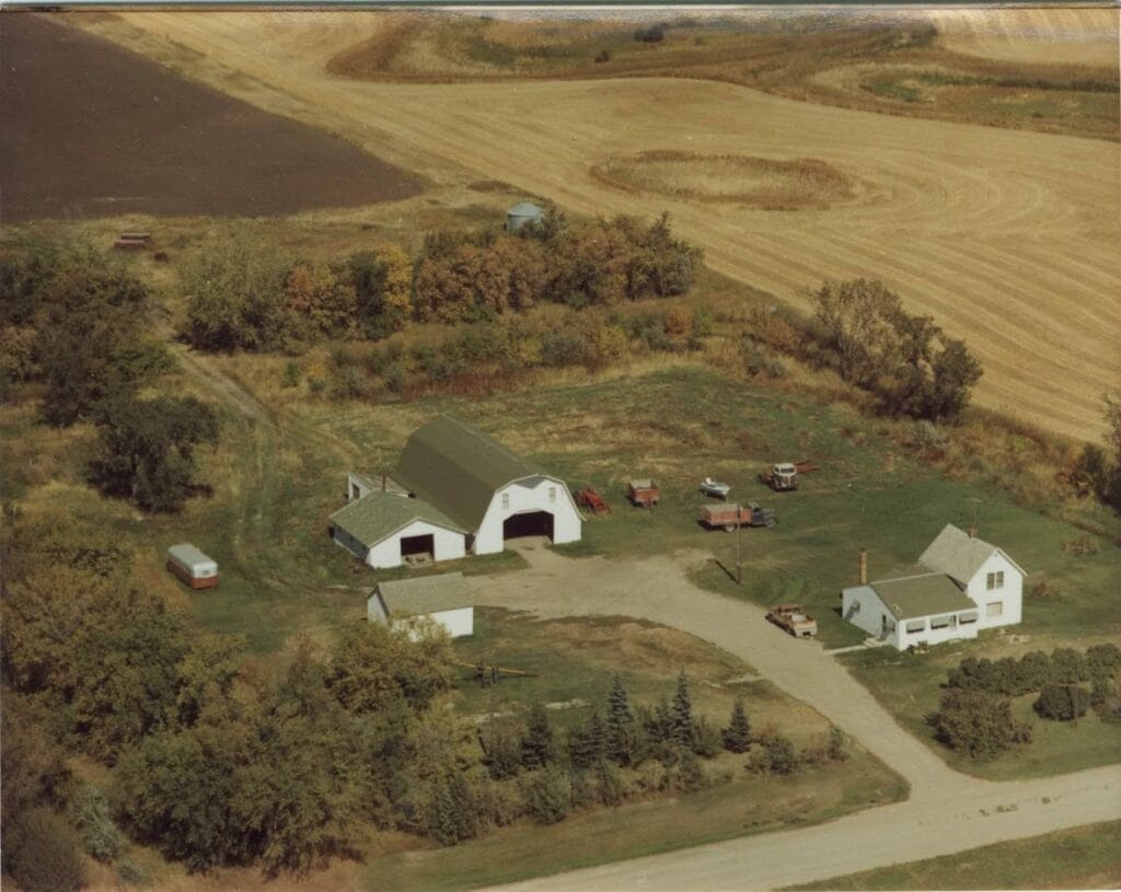 Et oversiktsbilde over gården til Tollef Tengesdal ved Loraine i Nord Dakota.