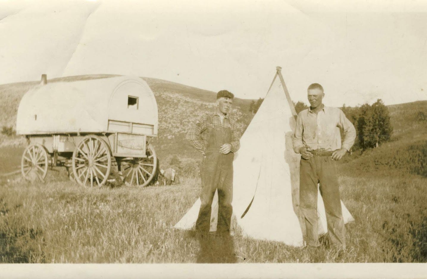 Tore Wiig besøker brødrene Ole Gabriel og Velle Vigesdal i Savage, Montana i 1953. Brødrene amerikaniserte navnene og ble Gabe og Will Wigedahl i USA. Samling: Privat, Njål Vigesdal