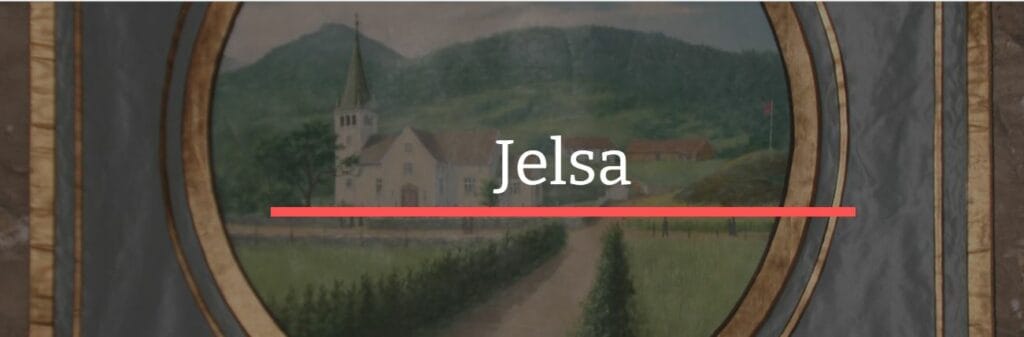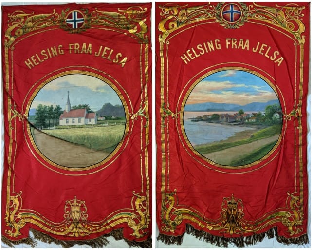 “Ja, så dukka fana for Jelsalaget i Amerika overraskande opp for kort tid sidan, eit par år etter at Suldalsfana kom for dagen etter fleire års lagring i Williams County, Nord-Dakota. Suldalsfana er nå til konservering etter at ho kom tilbake i fjor. Jelsafana frå 1931 er ikkje i fullt så god stand. men kvaliteten er slett ikkje verst etter snart hundre år. Jelsalaga vart skipa alt i 1917. Fana er signert Bernh. Holgerson, kunstmålaren som har måla dei fleste bygdefanene med eit klassisk motiv: Kyrkja på eine sida og eit kjent naturlandskap på den andre, her Jelsavågen. For min del trudde eg etter lang tids leiting og søk at dei bortkomne bygdefanene hadde enda sine dagar i ei nedstøva løe eller ein fuktig kjellar i Midtvesten, men det ser ikkje ut til å stemma, altså kan det framleis vera eit håp om at Sandsfana (1922) og Erfjordfana (1925) kan dukka opp før 200 årsjubileet for organisert norsk utvandring til Amerika i 2025. Jelsalaget hade i 1935 heile 83 medlemmer, med fleire kjende jelsanamn i ‘bestyrelsen’: Ole Vatland, N.T. Tveitero (Tveitarå), Lars Vatland.” Så vidt eg skjønar er fana i Rogalandslag (Stavanger Amt Laget) si varetekt, i alle fall til ei plassering kan verta avgjort seinare.
