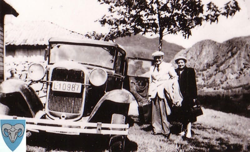 Bildet er tatt i 1948 og viser Letti og Bert Vinæt som er hjemme på besøk. Letti er søskenbarn til Anton Hareland. Nå skal de reise tilbake til Australia. Bileier er Laurits Hareland.