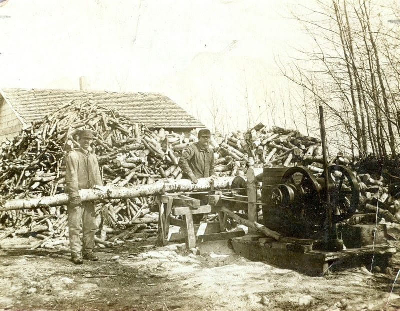 Brødrene Ludvig- og Askild Nygaard ved sagen. Otto Nygaard tar bildet.